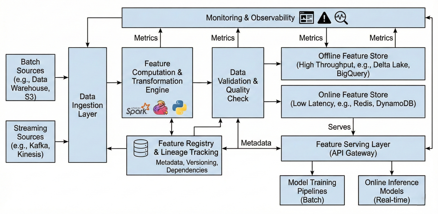 Modern MLOps increasingly relies on sophisticated feature stores that Airflow can orchestrate effectively: