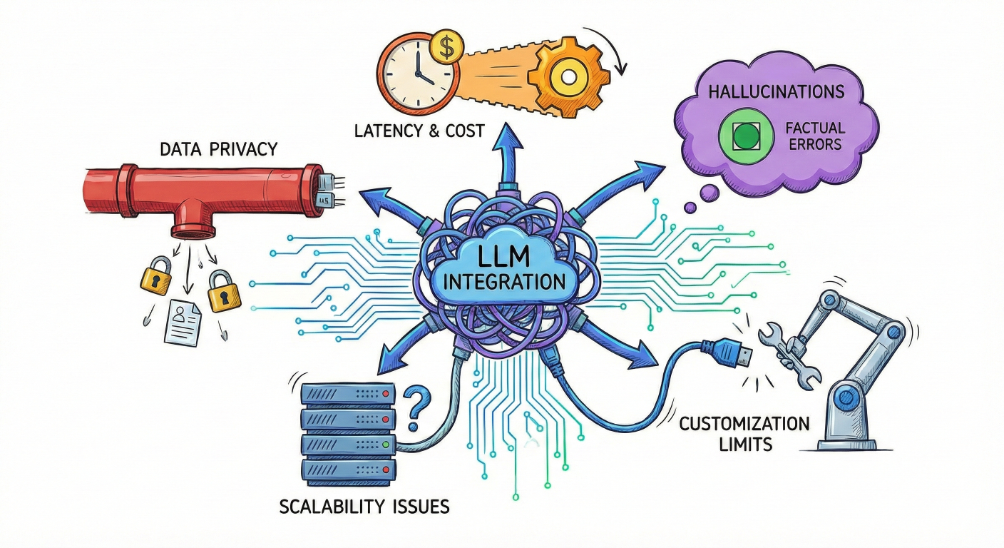 Problem illustration showing typical LLM integration challenges