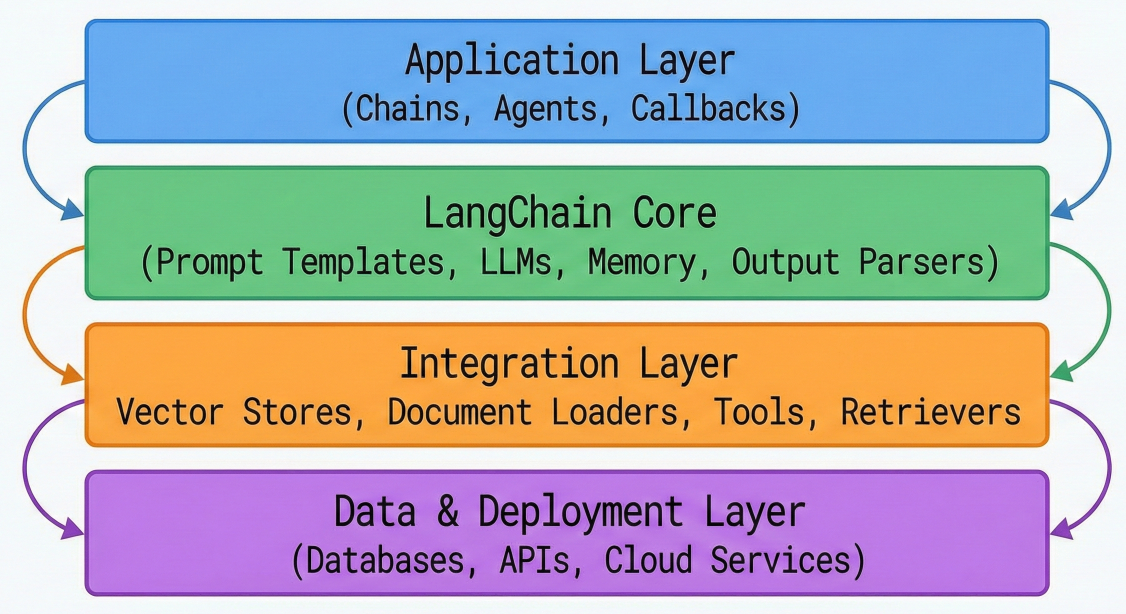 LangChain architecture diagram showing layered structure with component interactions