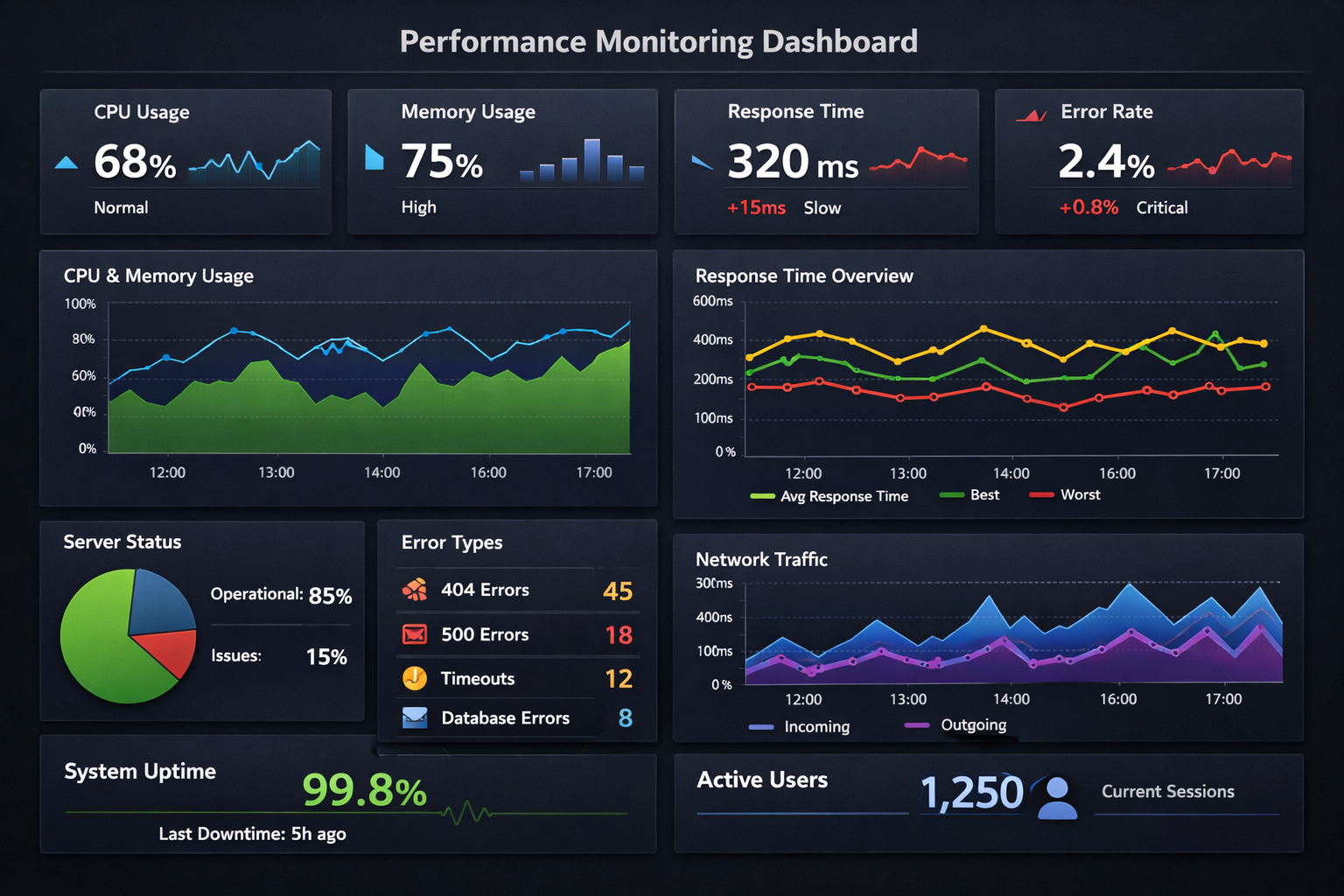 Performance monitoring dashboard visualization showing key metrics