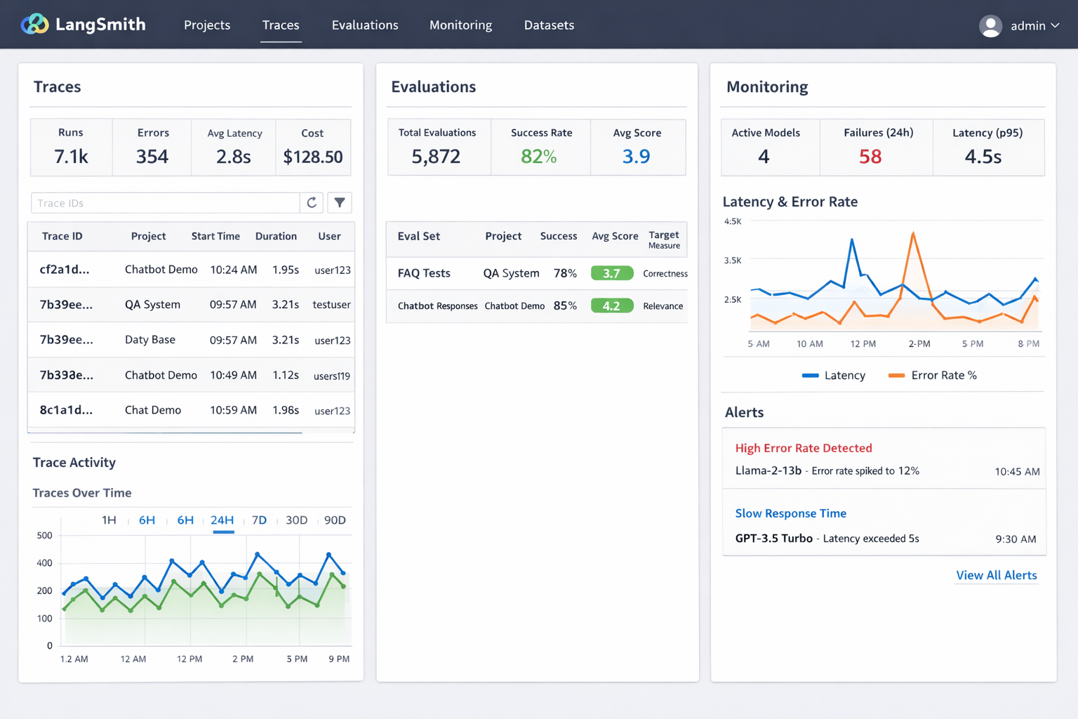 Production Monitoring Saves Businesses: The difference between a successful LLM application and a failed one often comes down to production monitoring. LangSmith's alerting and dashboard capabilities help you catch issues before they impact users.